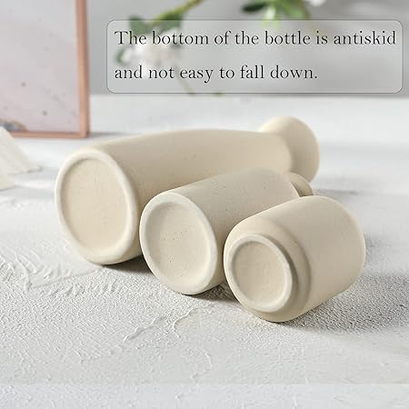 CEMABT Beige Ceramic Vase Set of 3 – Boho Farmhouse Small Decorative Vases for Dried Flowers & Pampas Grass