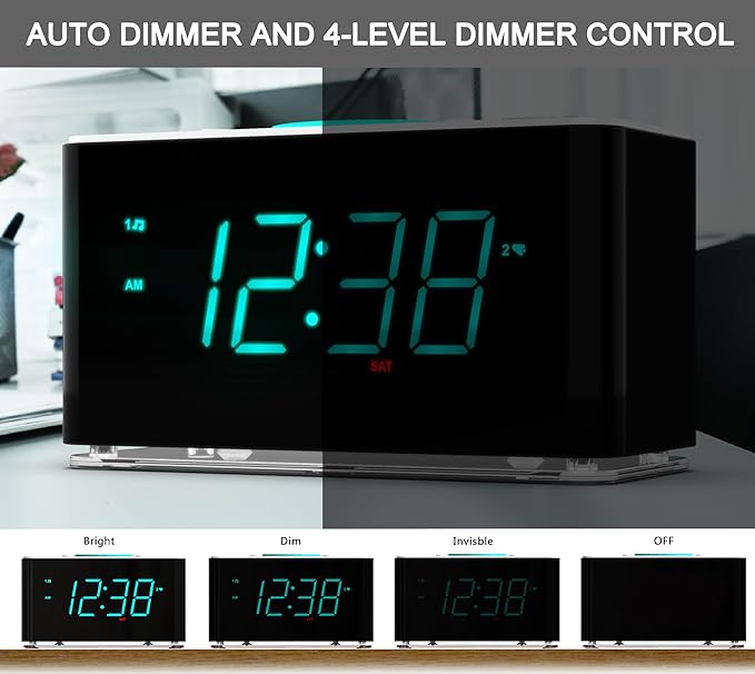 Dual Alarm with 4 Modes: Set alarms for weekdays, weekends, daily, or single-day only.
