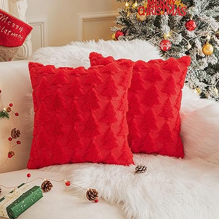 Celebrate the festive season in cozy style with the KEOYA Christmas Tree Pillow Covers. This set of 2 plush faux fur pillowcases brings a warm, wintry touch to your living room, bedroom, or holiday setup, featuring beautifully embroidered Christmas trees, snowflakes, and reindeer motifs.