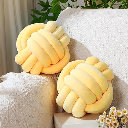 Add a warm, playful charm to your living space with the Namalu 2 Pcs Soft Knot Pillow Ball Set. These 8-inch light yellow plush throw pillows are carefully handmade from ultra-soft fabric and filled with fluffy cotton, offering both comfort and aesthetic appeal. Their charming knotted design brings modern texture and cozy vibes to any room perfect for sofas, beds, nurseries, or reading corners.