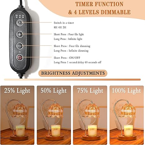 Timer & Dimming Options: Set for 2H/4H/8H auto shut-off. Adjust brightness to control melting speed.