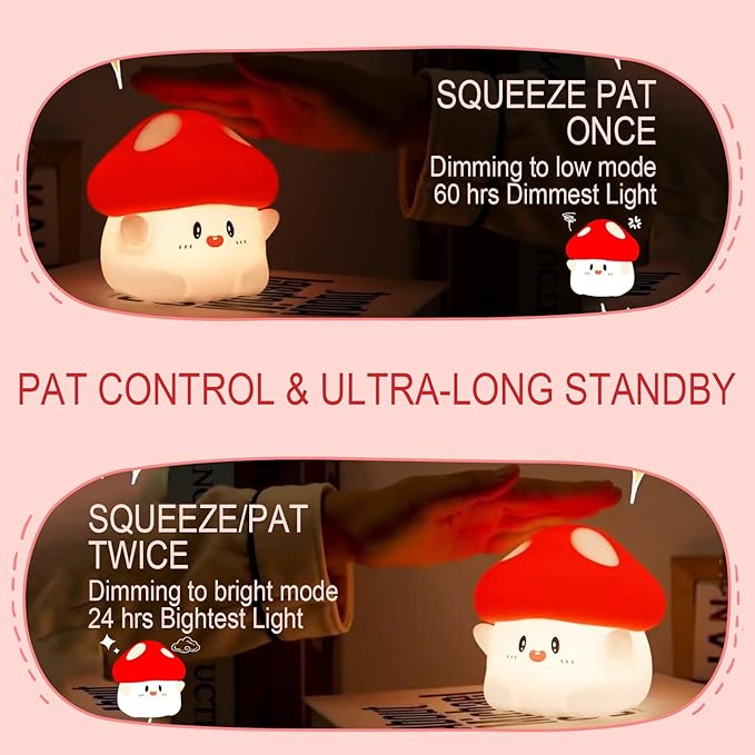 Add warmth, comfort, and fun to your nights with the Rytinazzz Mushroom Night Light a super cute, soft-touch LED lamp made from BPA-free silicone. Designed for both kids and adults, this adorable mushroom light offers gentle illumination, dimmable brightness, and convenient rechargeable power for a perfect bedtime companion.
