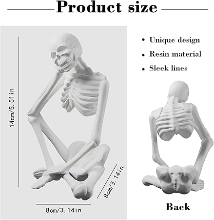 Artistic Abstract Design: Inspired by classic thinker sculptures, this skeleton statue symbolizes reflection, curiosity, and the darker beauty of thought.