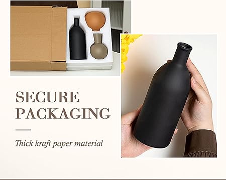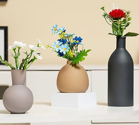 Elevate your space with the VASETOPIA Ceramic Vase Set of 3, crafted in a modern boho design that blends farmhouse charm with minimalist elegance. Featuring three complementary colors grey, black, and brown these vases create the perfect accent for any room.