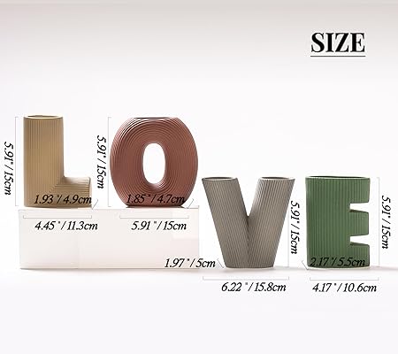 ✔️ Unique LOVE Design – Four vases shaped as L, O, V, and E with artistic textures for a subtle, meaningful statement.