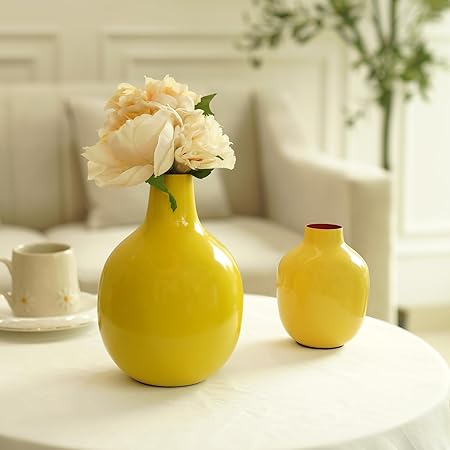 The vibrant yellow glossy finish brings instant warmth and joy to any room, whether it’s your living area, dining table, or office desk. These vases are perfect for displaying dried flowers, artificial blooms, or standing beautifully on their own as statement decor pieces.